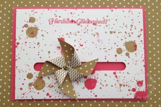 Jetzt zeig ich Euch schnell noch ein paar Babykarten bevor ich dann ins Bett husche. Man weiß ja nie wie lang die Nacht sein wird und wie oft man davor noch raus muß. Zwei kleine Kinder machen das Leben spannend . . . Alle drei Karten sind in rhabarberrot (InColor 2013-2015, Stampin Up) und flüsterweiß […]