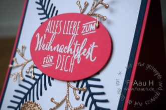 Ja ist denn schon Weihnachten? Nee, aber ich wollte bei der Global Design Challenge #053 mitmachen. Die Farben waren vorgegeben, allerdings hab ich kein Watermelon Wonder und musste auf Strawberry Slush zurückgreifen. Und da ich das Stempelset Tannenzauber und die Thinlits Tannen und Zapfen so schön finde, ist es eine Weihnachtskarte in einer eher ungewöhnlichen […]